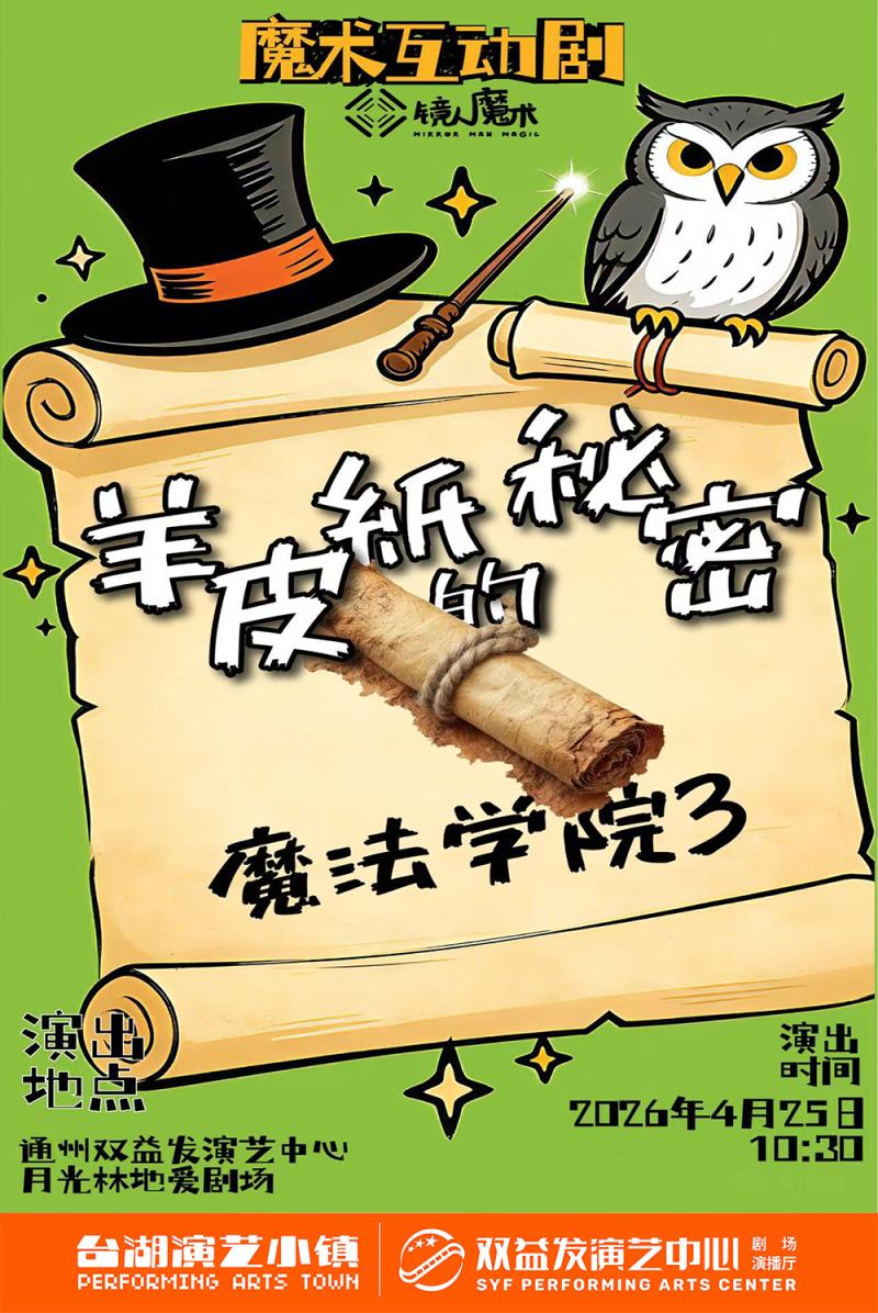 《羊皮纸的秘密》魔法学院3剩余:100天11小时30分10秒北京市通州区台湖演艺小镇双益发文创园月光林地•爱剧场已售: 568.00售票中 -